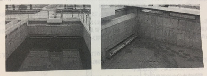 翻板閥濾池的配水系統(tǒng)屬于中(小)阻力配水系統(tǒng),采用獨(dú)特的上下雙層配氣配水層形 式,由橫向配水管、豎向配水管和豎向配氣管組成。這種獨(dú)特的結(jié)構(gòu)特點(diǎn)使得翻板閥濾池獲 得較其它類型濾池更均勻的配水配氣性能。 翻板閥濾池的反沖洗方式也與其它類型氣水反沖洗濾池不同,翻板閥濾池采用閉閥沖洗 方式,沖洗過程分為氣沖+氣水聯(lián)沖+水沖、單獨(dú)水沖兩大階段,無論水沖、氣沖時都不 向外排水,一個反沖洗階段結(jié)束后,靜止數(shù)十秒后再排水。因此翻板閥濾池基本不會出現(xiàn)濾料流失現(xiàn)象。